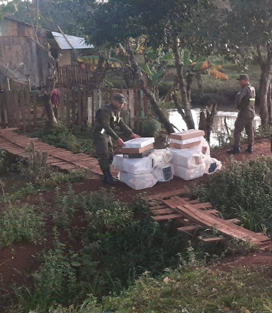 Los integrantes del Escuadrón 12 "Bernardo de Irigoyen" estaban realizando patrullajes en la localidad de San Antonio cuando en una zona cerca al paso Internacional Fronterizo con la República Federativa de Brasil cuando observando a dos personas que llevaban varios bultos cargados en sus hombros.