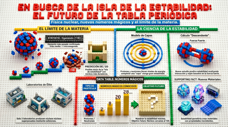 A pesar de esta brevedad, la ciencia predice que no hemos llegado al final del camino. Existe un lugar teórico donde los átomos, contra todo pronóstico, vuelven a ser "fuertes" y resistentes: un destino conocido como la Isla de Estabilidad.